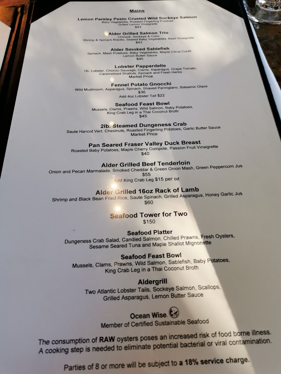“ This is one of my favorites, great food, friendly servers and a great view. They have a good wine list and their grilled salmon trio of 3 kinds of salmon and seafood tower are great choices. ”